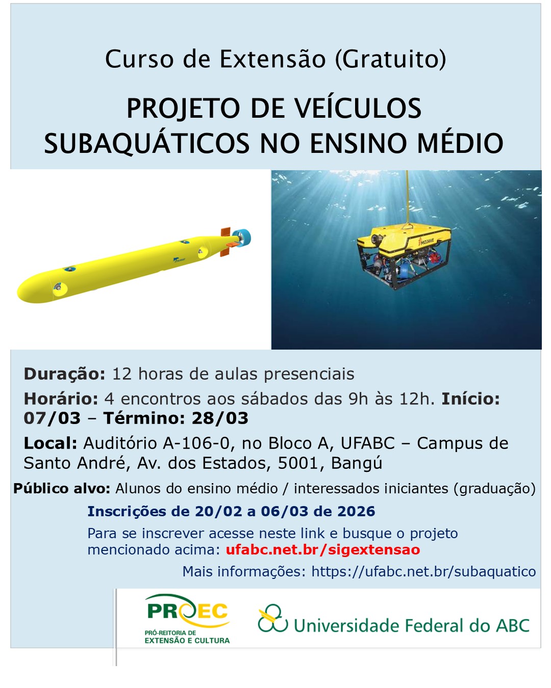 Acesse o link ufabc.net.br/sigextensao e realize sua inscrição de até 06 de março de 2026.